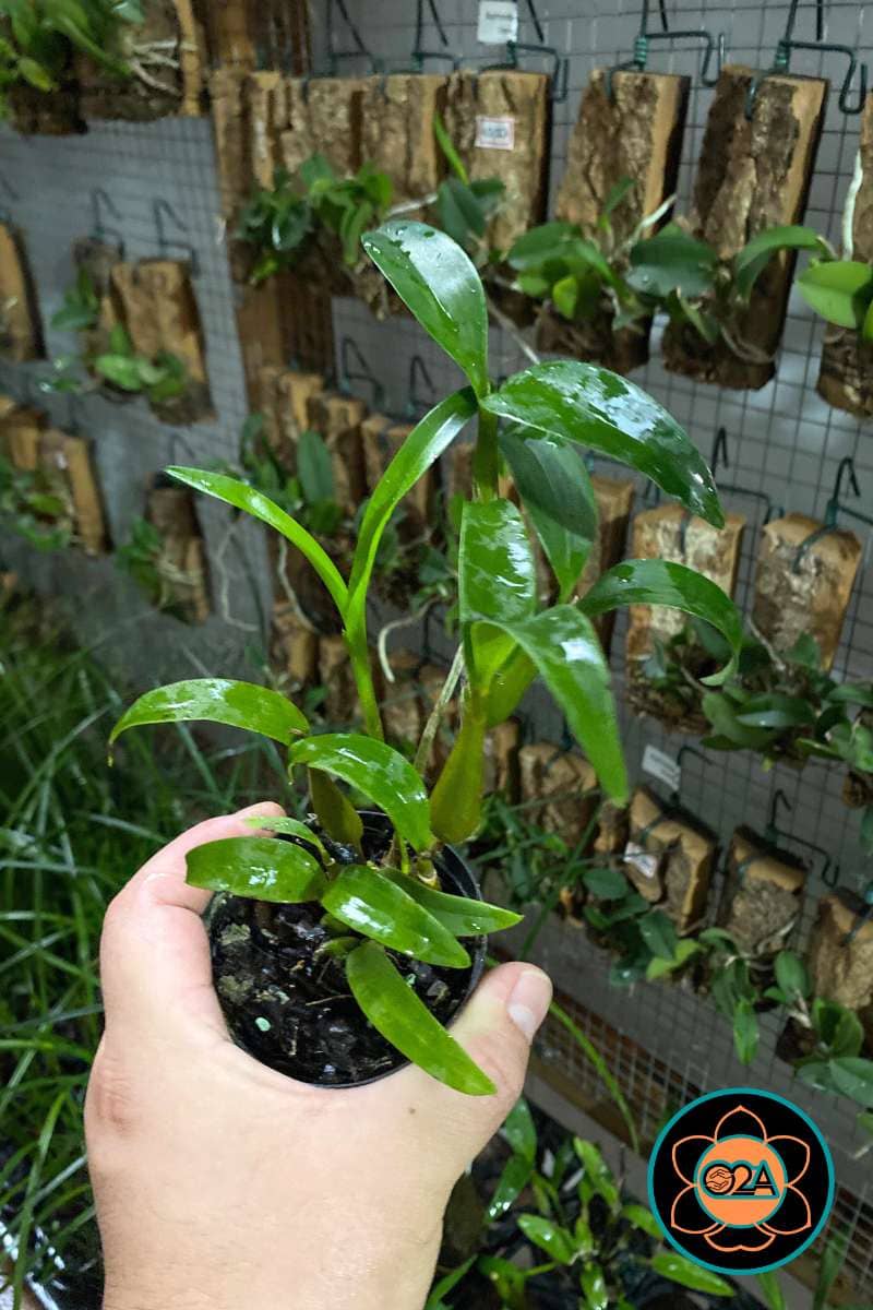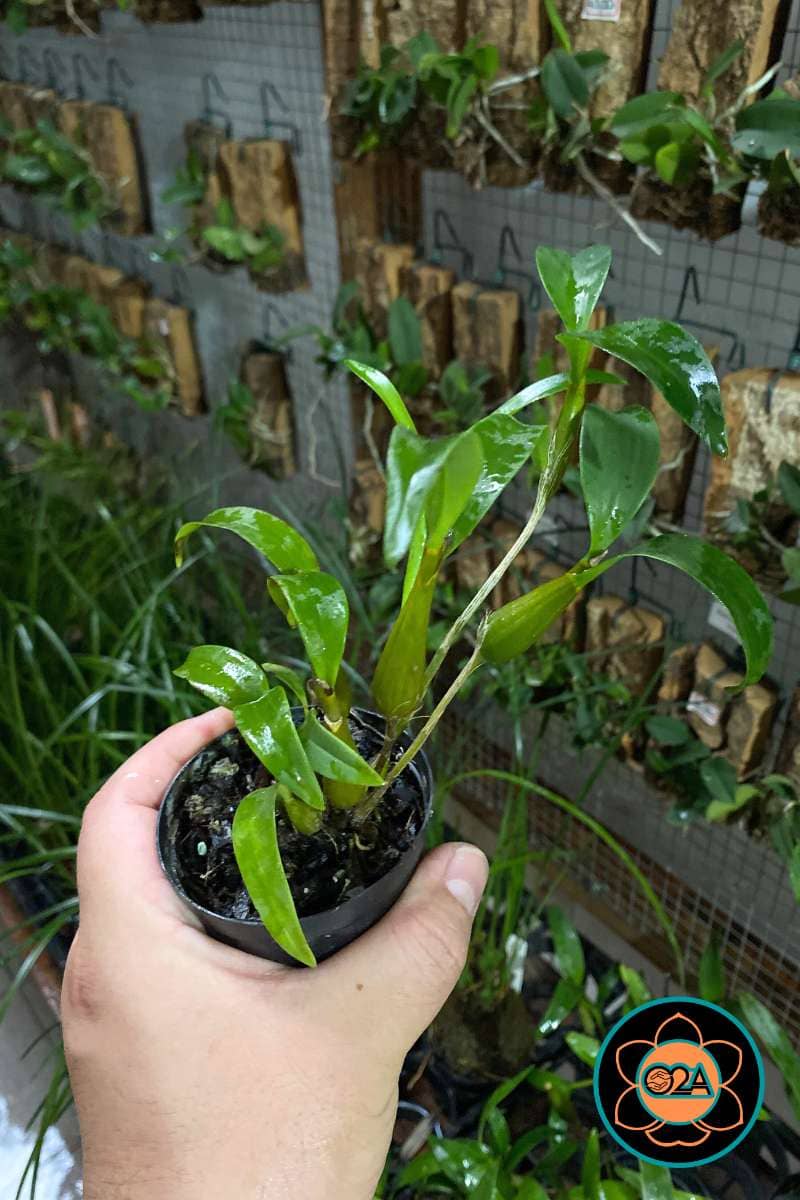 Porte da Planta: Mini a Pequeno porte. Possui pseudobulbos delgados na base e dilatados no topo, geralmente com 10 a 20 cm de altura.