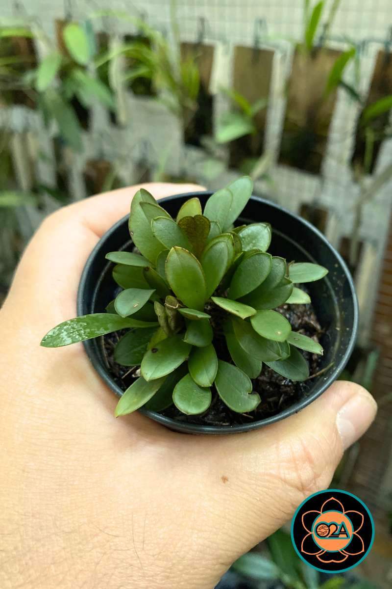 Umidade no Ambiente: Alta (acima de 70%). Por ser uma micro-orquídea sem pseudobulbos para armazenamento de água, depende da umidade constante do ar.